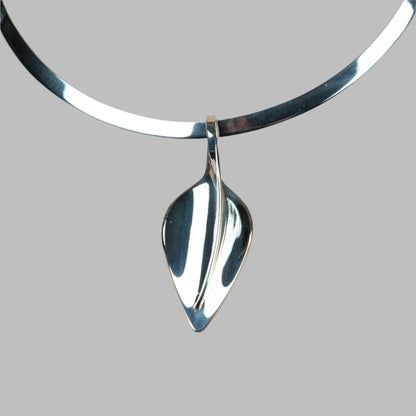 Ett stiliserat löv, handgjort i återvunnet silver, fångar naturens skönhet i en enkel och tidlös form. Det är ett smycke som kan bäras till allt – från vardagens enkla tröja till en elegant kvälls look. På en halsring, en lång tubkedja eller en mockarem. Det massiva, stilrena silver lövet känns både kraftfullt och subtilt på samma gång. Oavsett tillfälle, är detta smycke ett tidlöst val.